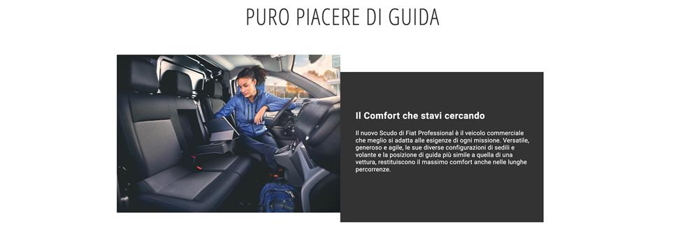 Fino a 13 dispositive di sicurezza attiva e passivaIl nuovo Scudo di Fiat Professional nasce dotato di un ecosistema di tecnologie all’avanguardia per supportarti alla guida e rendere ogni viaggio il più sicuro possibile.